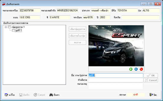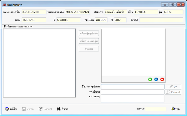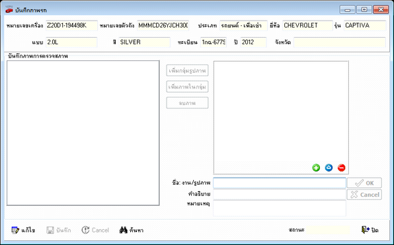 เลือกเมนูจัดซื้อ --> บันทึกภาพรถ