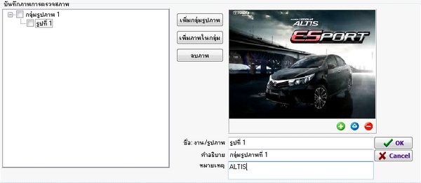 หน้าสำหรับการเก็บรูปภาพของรถเก็บไว้ในระบบ เพื่อเก็บเป็นรายละเอียดของสินค้าไว้ในระบบ เพื่อสามารถมาตรวจสอบและพิจารณาในการขายสินค้า