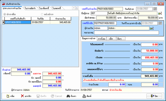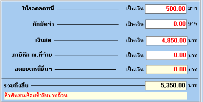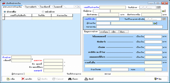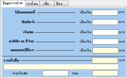 ส่วนที่ใส่จำนวนเงินที่ต้องการชำระ สามารถเลือกชำระแบบเงินสด ,แบบเงินโอน ,แบบเช็ค และอื่นๆ