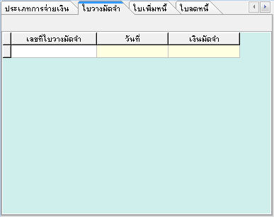 แท็บ "ใบวางมัดจำ" ส่วนของการเลือกใบวางมัดจำ ดังรูป