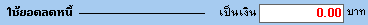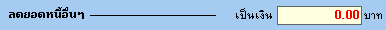 - กดปุ่ม หลังจากกดปุ่ม - กดปุ่ม - ใส่เลขที่อ้างอิง - ใส่ยอดลดหนี้ - ใส่จำนวนเงินในช่องเงินสด เมื่อใส่ยอดเงินเสร็จระบบจะแสดง ดังรูป