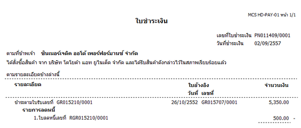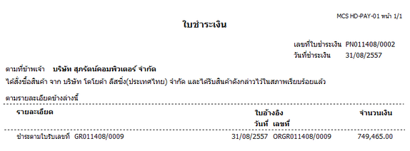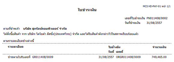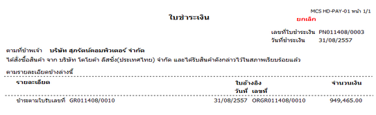 รูปที่ img12_80 - กดปุ่ม เมื่อทำการกดปุ่ม ระบบจะทำการแสดงรายละเอียดใบเสร็จที่ทำการค้นหา ดังรูป