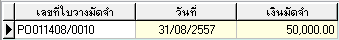 - กดปุ่ม หลังจากกดปุ่ม - กดปุ่ม เมื่อเลือกเลขที่ใบวางมัดจำระบบจะแสดง ดังรูป - ใส่เลขที่อ้างอิง - ใส่จำนวนเงินหักมัดจำ