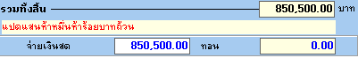 - ใส่จำนวนเงินในช่องเงินสด เมื่อใส่ยอดเงินเสร็จระบบจะแสดง ดังรูป