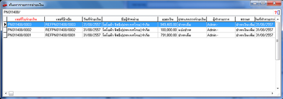 เมื่อทำการกดปุ่ม ระบบจะทำการแสดงรายการให้เลือกใบจ่ายเงิน