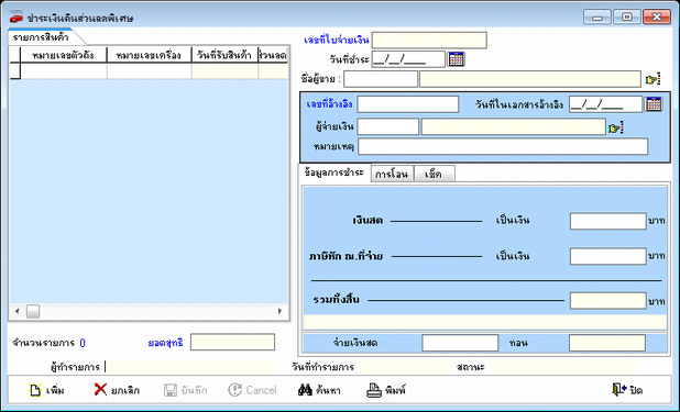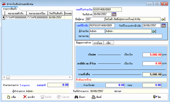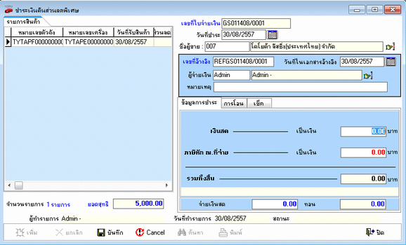 บันทึกชำระเงินส่วนลดพิเศษ |