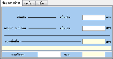 แสดงรายละเอียดการชำระเงิน และรูปแบบการชำระเงิน (เงินสด/การโอน/เช็ค)