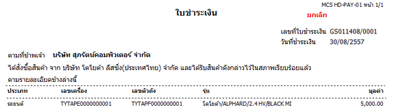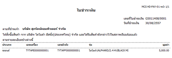 แสดงรายการสินค้า ที่ทำสัญญาและทำการชำระเงิน มีรายละเอียดดังนี้