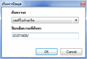 ขั้นตอนการค้นหาใบเสร็จ มีขั้นตอนดังนี้ - กดปุ่ม - ใส่ข้อมูลการค้นหาใบเสร็จ ดังรูป