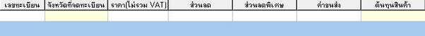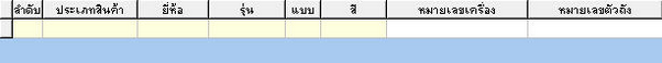 - ส่วนแสดงข้อมูลรถจะแสดงข้อมูลตามที่ได้บันทึกไว้ในหน้ารับสินค้าประกอบไปด้วย ลำดับ, ประเภทสินค้า, ยี่ห้อ, รุ่น, แบบ, สี, หมายเลขเครื่อง, หมายเลขตัวถัง, เลขทะเบียน, จังหวัดที่จดทะเบียน, ราคา(ไม่รวม VAT), ส่วนลด, ส่วนลดพิเศษ, ค่าขนส่ง, และต้นทุนสินค้า ซึ่งไม่สามารถแก้ไขได้
