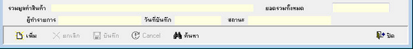 - รวมมูลค่าสินค้า แสดงมูลค่าต้นทุนรวมของสินค้าทั้งหมดเป็นตัวอักษร - ยอดรวมทั้งหมด แสดงมูลค่าต้นทุนรวมของสินค้าทั้งหมดเป็นตัวเลข - ผู้ทำรายการ แสดงชื่อนาม-นามสกุล ของผู้ดำเนินการบันทึกรับใบเสร็จ - วันที่บันทึก แสดงวันที่ที่ดำเนินการบันทึกรับใบเสร็จลงในโปรแกรม - สถานะ แสดงสถานะของใบเสร็จ มี 2 สถานะ ปกติ และยกเลิก